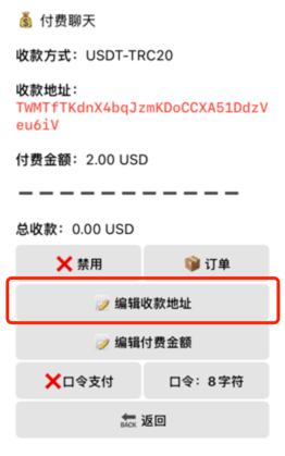 收款地址编辑完成后,系统将提示 "✅ 收款地址设置成功"。